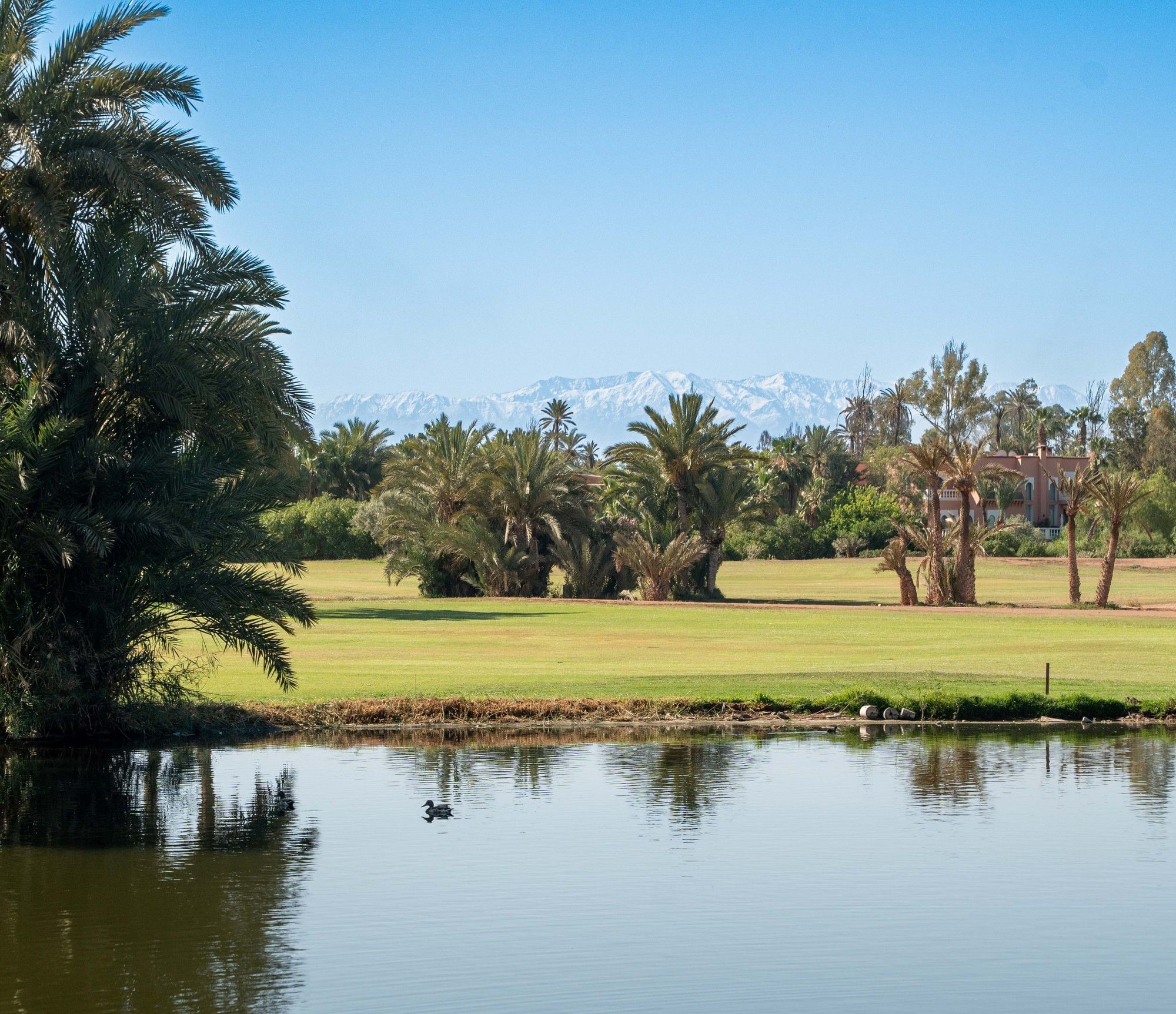 Die großzügig gestaltete Anlage befindet sich in dem Bereich Palmeraie der Stadt Marrakesch und bietet einen einzigartigen Ausblick auf den angrenzenden Golfplatz des Hotels. Der Flughafen von